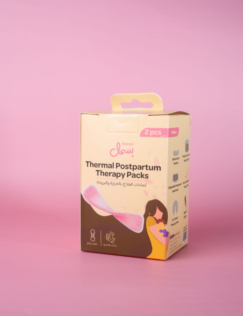 كمادات العلاج بالحرارة والبرودة توفر هذه الكمادات القابلة للتسخين والتبريد الراحة خلال فترة التعافي لما بعد الولادة وتتميز بمرونتها حتى بعد التجميد لتوفير راحه اكثر الامهات الجدد تعمل كمادات بسمل على تخفيف الالام في منطقة العجان والبواسير